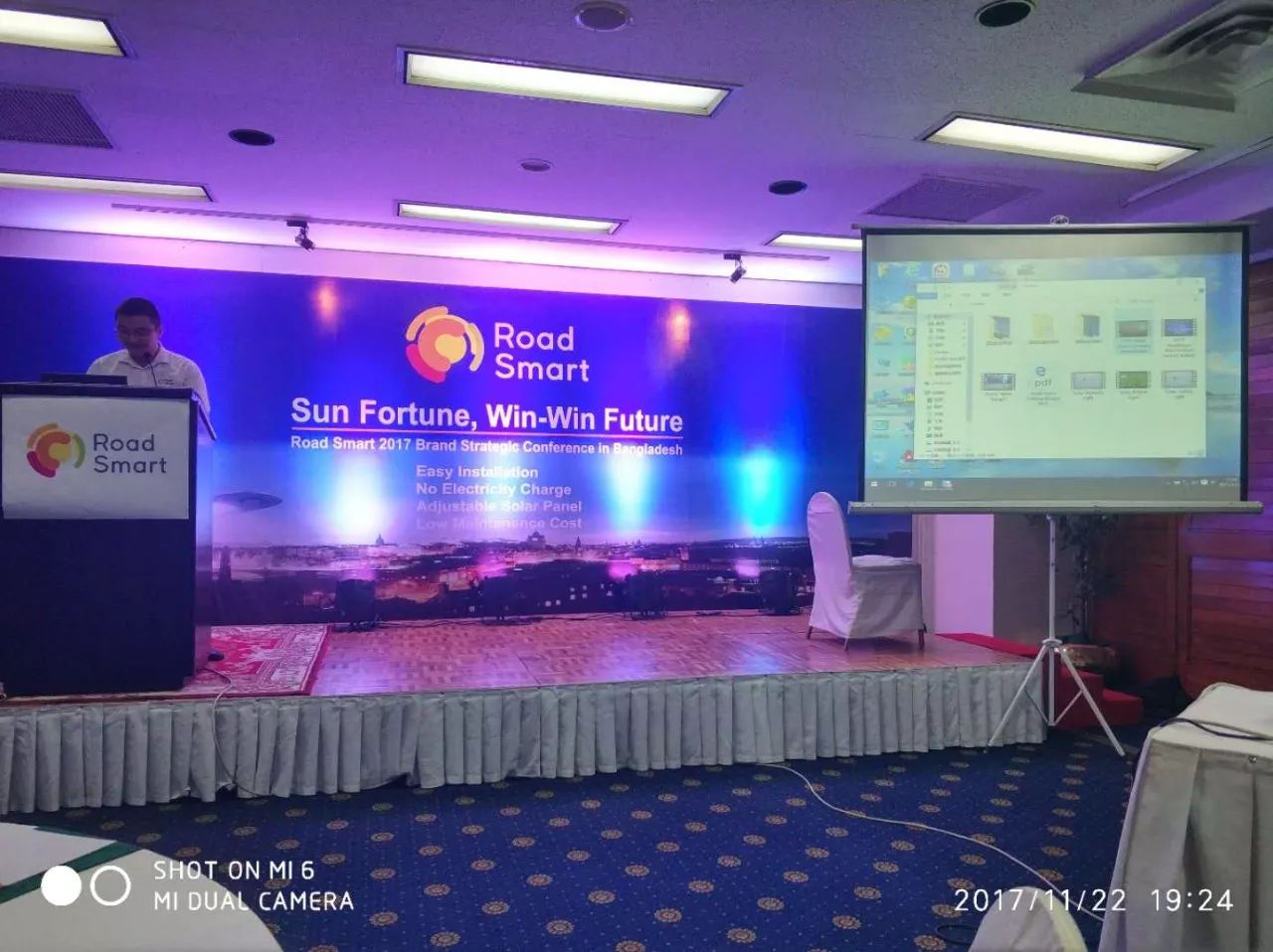 2017年11月19日,在南亞孟加拉國的首都達卡隆重的舉辦了可再生能源博覽會,源碼攜太陽能智慧路燈系列產品閃耀亮相此次展會,為此次源碼2017孟加拉品牌戰(zhàn)略發(fā)布會打了響亮的第一槍,產品的超高光效與優(yōu)美的工藝設計驚艷全場,吸引了眾多來賓的駐足與咨詢,其中不乏政府要員、權威媒體和各類優(yōu)質客戶。