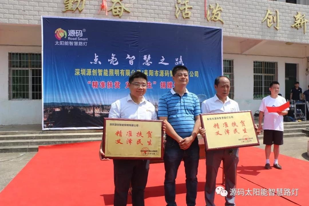 2018年7月28日捐贈給耒陽市哲橋鎮一批源碼太陽能智慧路燈,助力哲橋鎮基礎設施建設。